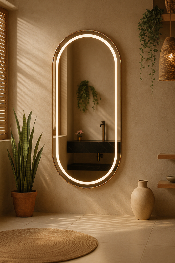 مرايا بيضاويه مع ليد ثلاث الوان مقاس 120*60 cm