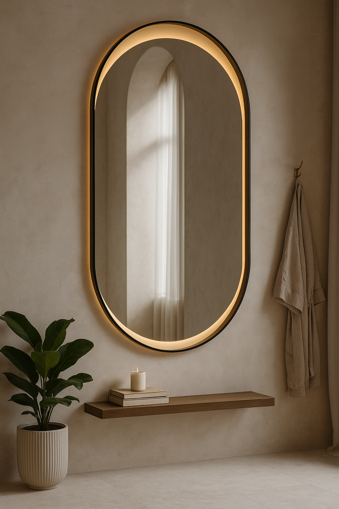 مرايا بيضاويه مع ليد ثلاثة الوان مقاس 60*120