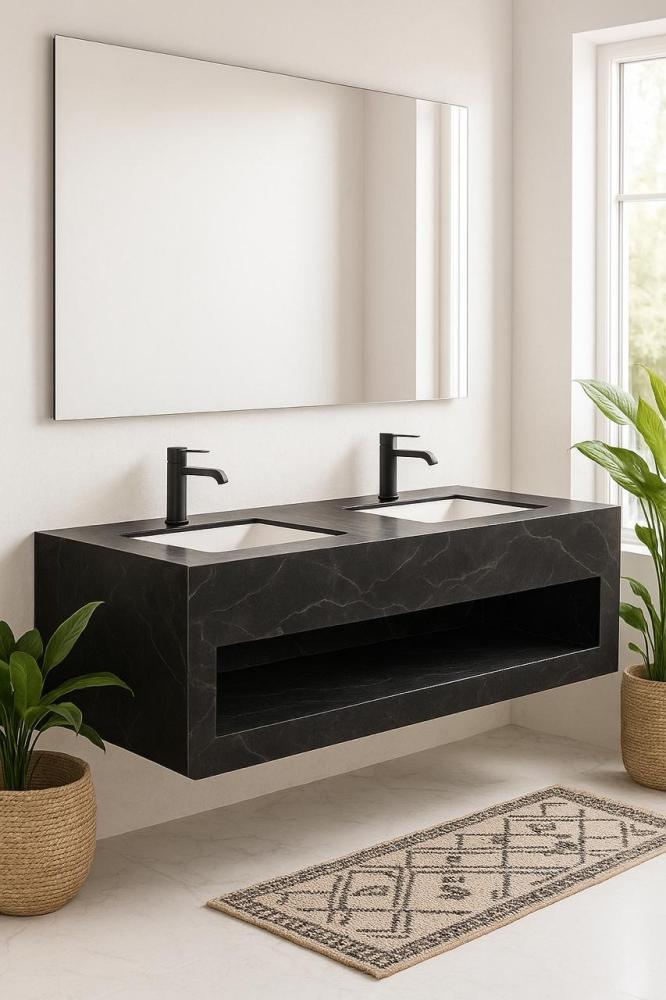 مغسله رخام صناعي حوضين 150*50 cm مع مرايا